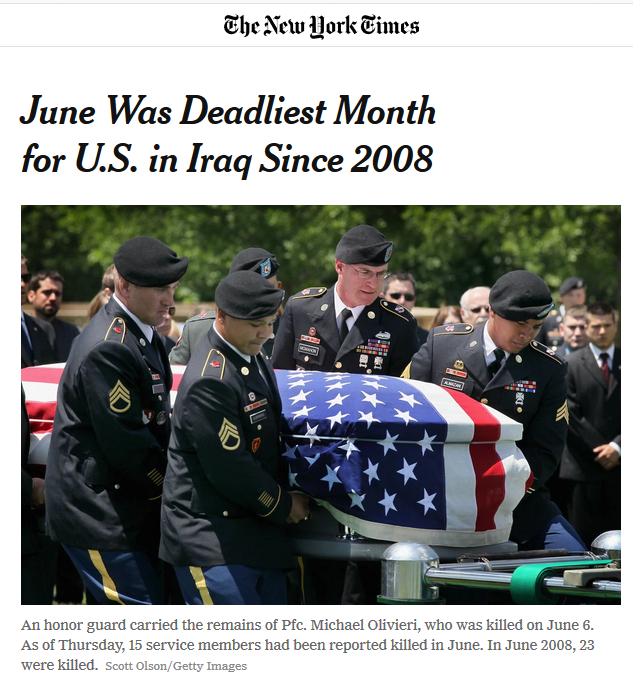 Iraq Combat Deaths at 3-Year High for U.S. – The New York …