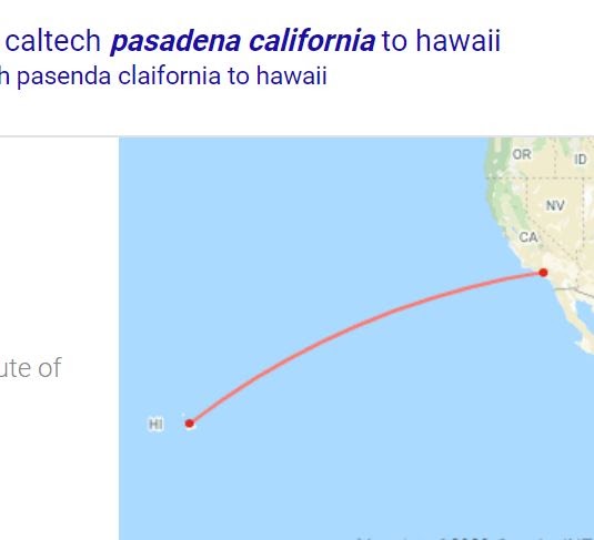 Hawaii + Thorne at Caltech…..thus we have the salt water of the Pacific Ocean and 2 land locations: Hawaii Islands….salt water….. California and CALTECH …thus we see
