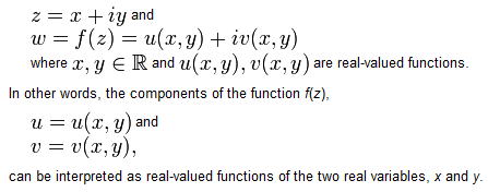 For any complex function, both the independent variable and the dependent variable may be separated into real and imaginary parts