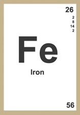 Fe = Ferrous oxide /iron 26 protons and their 26 atomic alphabet