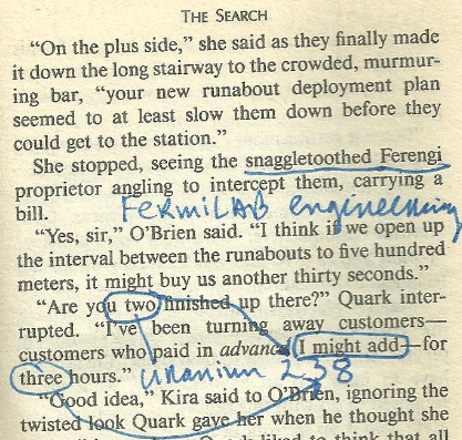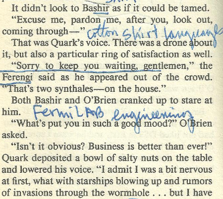 –> snaggletoothed Ferengi = a communications problem/ snaggle/ of the 32 bio-computer word teeth/output verbal device known as the mouth of Ferengi = FermiLAB engineering.