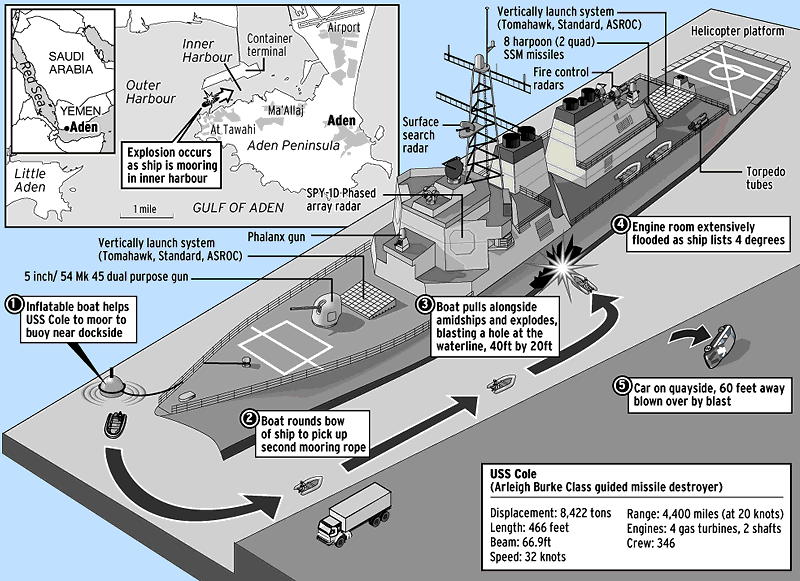 a) the U.S.S. Cole incident of October, 2000 for the U.S.Navy and their specialist in tides