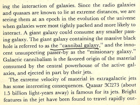 –> “Galactic cannibalism is the favored origin of the material consumed by the central powerhouse of the active galaxies..…”