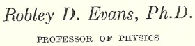 Jan 4, 1996 – Dr. Robley D. Evans, professor emeritus of physics at the Massachusetts Institute of Technology, winner of the 1990 Enrico Fermi Award and