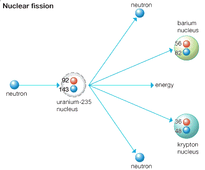 uranium: slow neutron splits a uranium isotope U-235