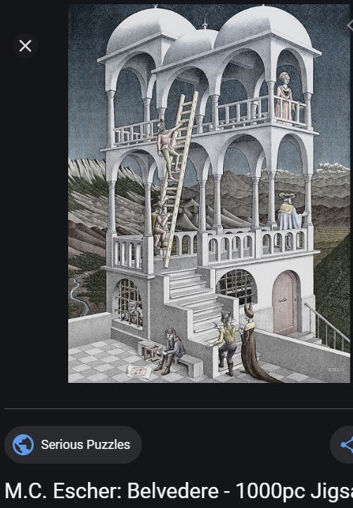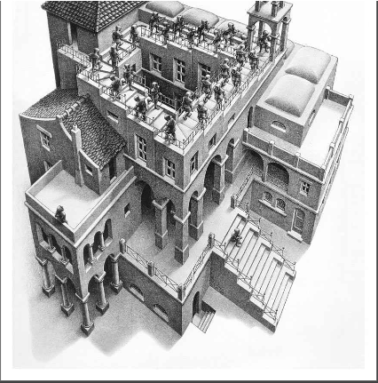 Relativity – Waterfall – Tower of Babel – Dolphins