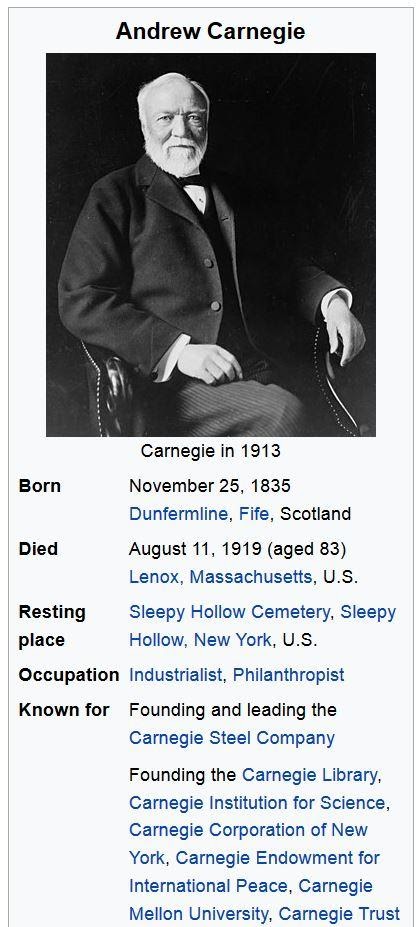 Andrew Carnegie was born to Margaret Morrison Carnegie and William Carnegie in