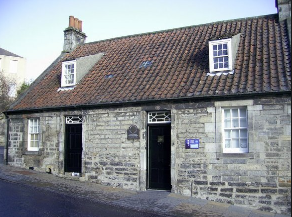 Dunfermline, Scotland, in a typical weaver’s cottage with only one main room, consisting of half the ground floor, which was shared with the neighboring weaver’s family.[7] The main room served as a living room, dining room and bedroom.[7]
