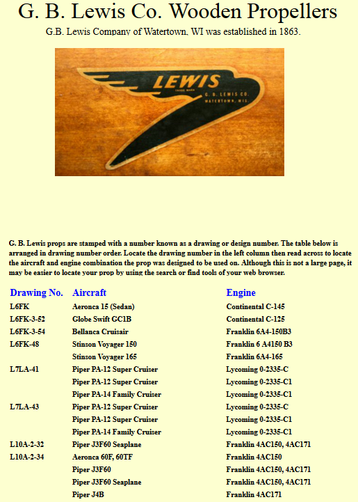 G.B. Lewis Company of WatertownWI was established in 1863. Home | Propeller Identification |. G. B. Lewis props are