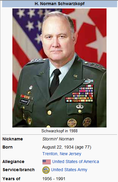 born August 22, 1934), also known as “Stormin’ Norman” and “The Bear”, is a retired United States Army General who, while he served as