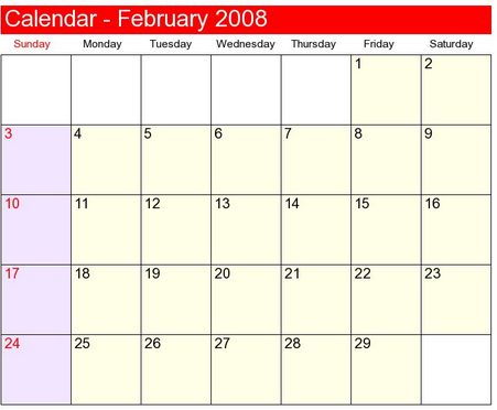 Fe = February 28 Days  (year 2)