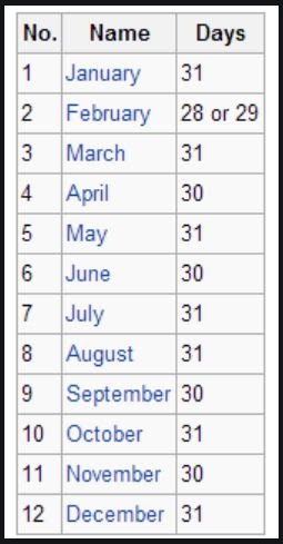 Fe = February 28 days  (year 3)