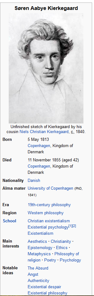 The early 19th century philosopher Soren Kierkegaard is widely regarded as the … 3.1