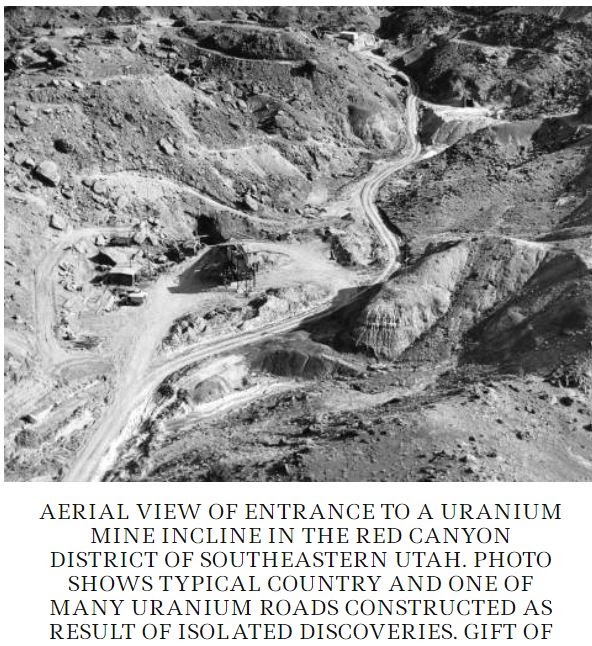 Raye C. Ringholz Beehive History 16. Charles A. Steen. … Small rail cars loaded with uranium from Atlas Minerals uranium mine. … Aerial view of entrance to a uranium mine incline in the Red Canyon district of southeastern Utah. Photo shows typical country and one of many uranium roads constructed as …
