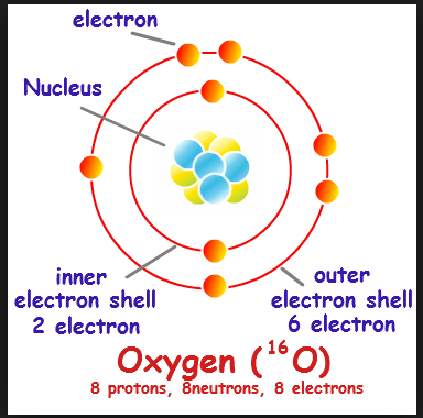OXYGEN Molecule continuum of 16 electrons and molecule weight 32.
