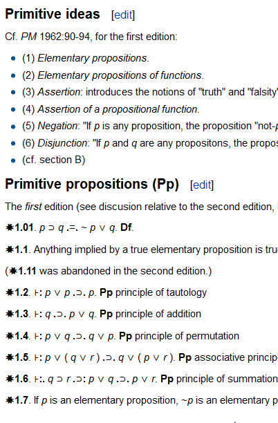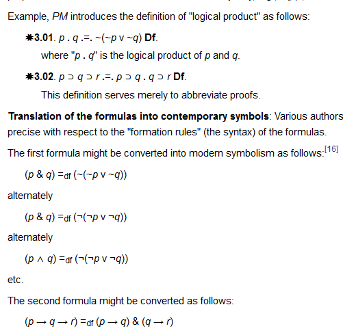 with P,Q the math logic symbols of Russell/Whitehead in year 1910 book Principia Mathematica.