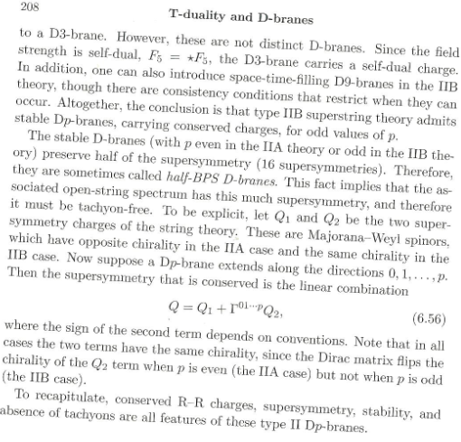 The stable D-branes (with p even …) preserve half of the supersymmetry (16 supersymmetry)