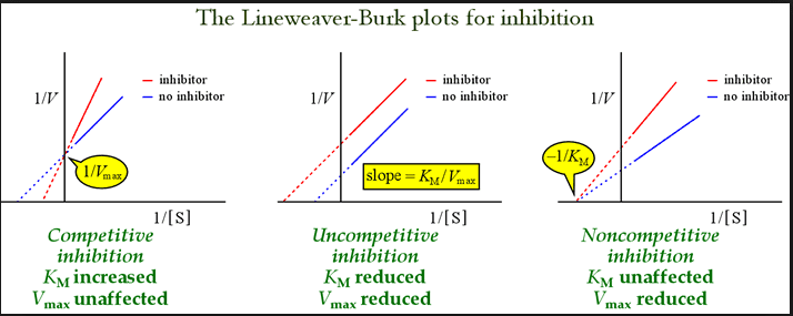The graphs above basically summarizes what happens with competitive, uncompetitive and non-competitive.