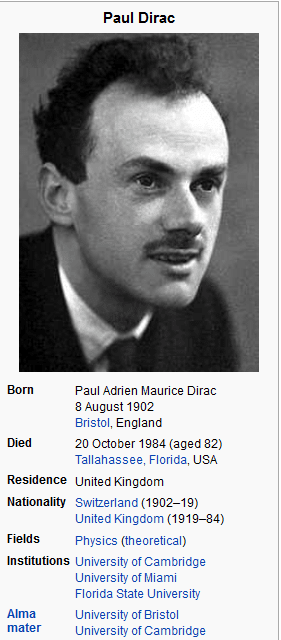 Paul Adrien Maurice Dirac (bor in year 1902) thus provides the SYMBOL MACHINE with proper noun LINKAGE maps and approximations.
