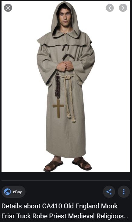 The monk robe may be the most versatile and modest garment one could own, but don’t let its simple looks fool you. The person wearing it has most likely earned it through religious, magical or other secretive means. It was a mark of humble accomplishment and immense power. – See more at: http://yeoldrenaissanceshop.com/product/robes-cloaks-capes/monks-robe-and-hood/#sthash.cCUeo5H5.dpuf