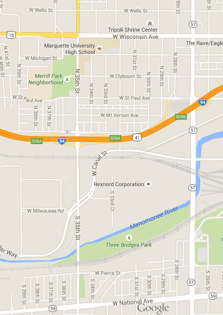 The industrial area of Milkwuakee …with Falk iron gear bewteen 27th street and 35th street … with the copper 29 Street interface.