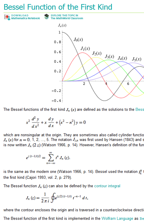 The Bessel functions are more frequently defined as solutions to the differential equation. There are two classes of solution, called the Bessel function of the first kind and Bessel function of the second kind .