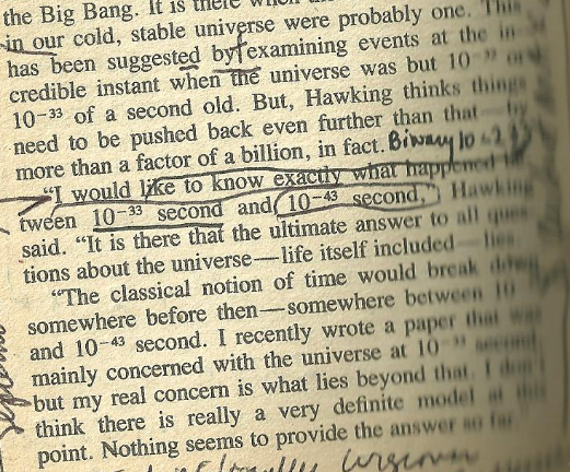 Thus the author of this book is writing about molecules and Max Plack TIME code 43   that links to the Stephen Hawing astrophysics book.