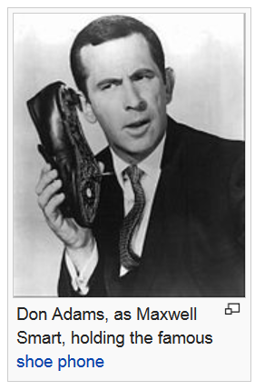 Don Adams, as Maxwell Smart, holding the famous shoe phone