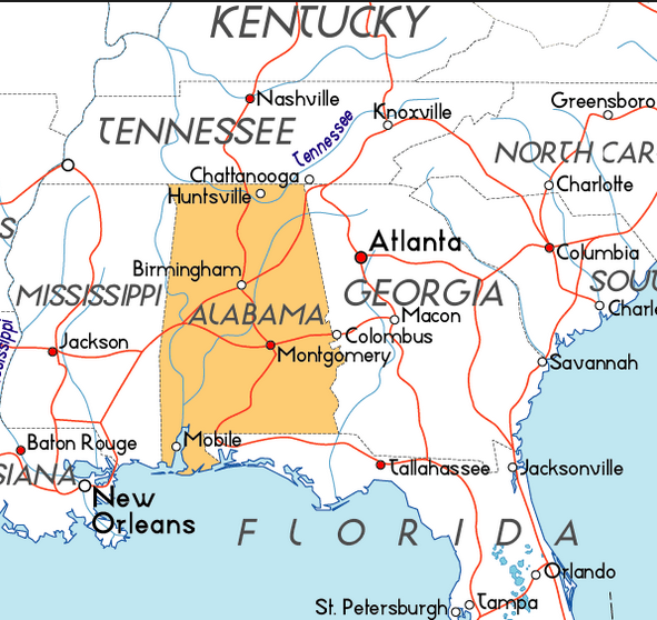 Alabama –> code letters–> Al + lab  + ba + ma –> Alphabets LAB  base map  (for the