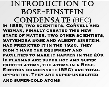 The BEC phenomenon was first predicted  by Satyendra Bose and Albert Einstein in the 1920s, hence the name. BEC was first noted to exist in liquid helium.