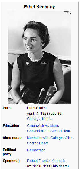 Ethel Skakel Kennedy (born April 11, 1928) is an American human-rights campaigner and widow of Senator Robert F. Kennedy, who was assassinated while …
