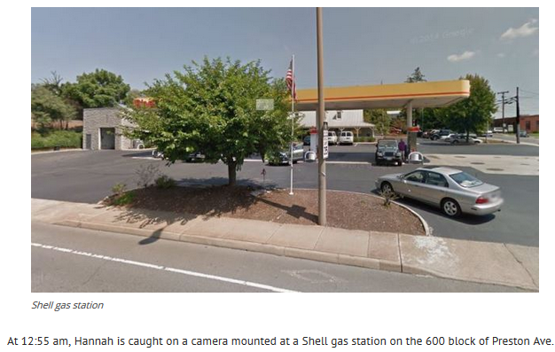 a) Hannah Graham at 12.55 AM at a Shell gas Station in city of CH = Charlottesville with codes 55AM –> 55 atomic mass sugegsts IRON. Charlottesville has EARTH coordinates 38 degrees