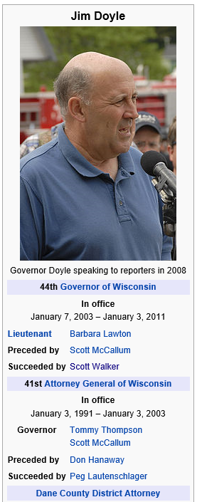 Wis.CON.sin Governor Doyle ….. (CLUE to refer back to Sherlock Holmes) —> the HOLMES signal from Cudahy, Wisconsin