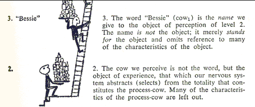 … Hayakawa’s version starts with a real live animal, Bessie the cow. … collected by Hayakawa in his archetypal version of the abstraction ladder, see the illustration alongside.