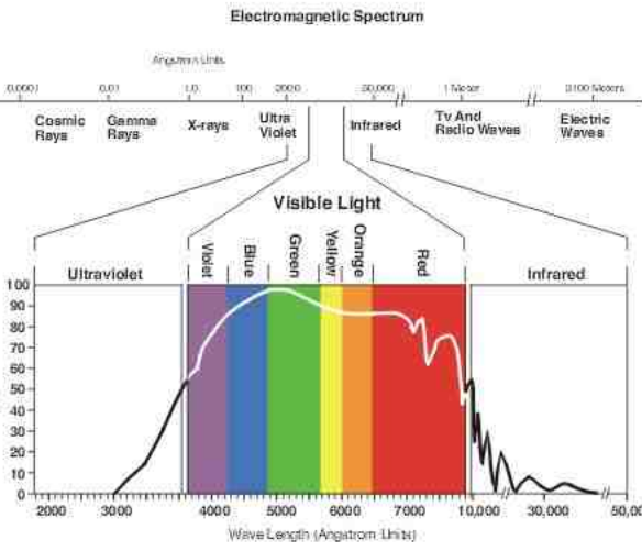 The visible-light spectrum extends from approximately 7700 angstroms (red light) to 3900 angstroms (violet light –> violence light war … the Star Wars photon wars on EARTH ). This corresponds to frequencies of 390 to 770 …