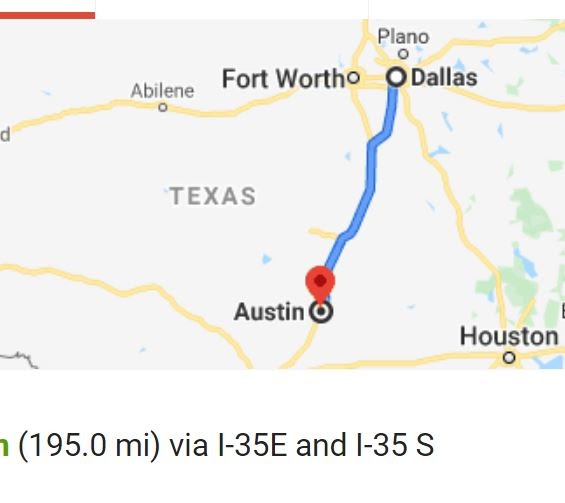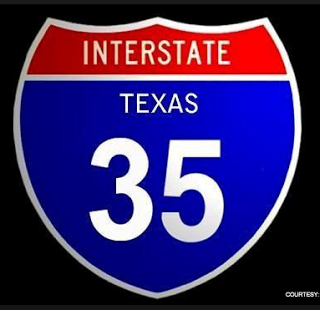 Below we see the  2-directions of the highway from Dallas to Austin. One side on the INTERSTATE is  in the I-35 direction.