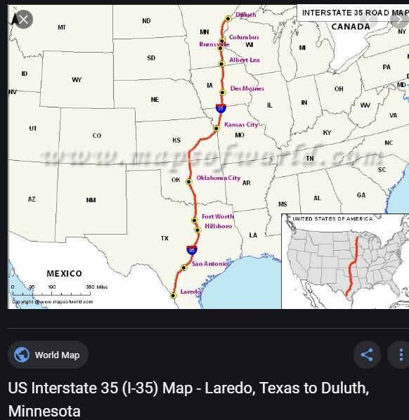i-35 Interstate 35 Maps, Traffic, News, Transportation Info, and More.  from the US/Mexico border at Laredo TX, all the way north to Duluth MN, just south of the